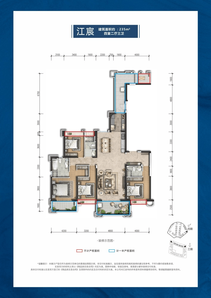 面积:235㎡,套四三卫