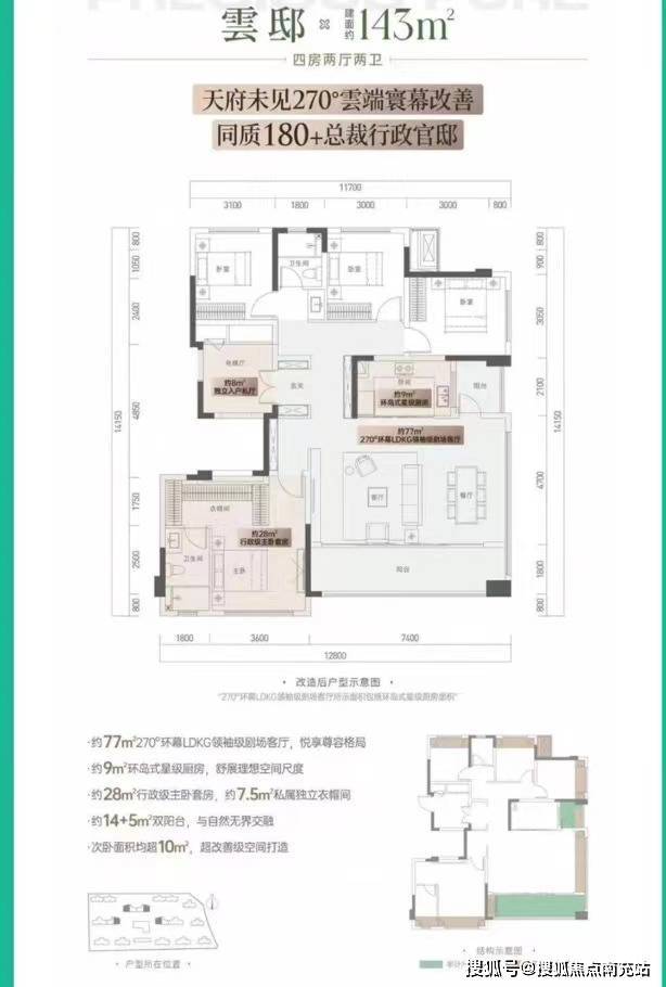华润中环天宸在户型设计上同样下足了功夫。项目推出了多种户型,包括110平、123平和143平等,满足不同购房者的需求。其中,110平户型为标准的套三双卫竖厅设计,虽然主卧和客厅分别在东西侧开有采光窗,可能会与123户型客厅形成对视问题,但整体居住体验依然舒适。123平户型则为经典的套四双卫格局,电梯入户+横厅+南北通透的设计,大大提升了居住品质。而143平户型更是亮点多多,南侧拉通采光面能达到15.5米之多,客厅转角没有柱子遮挡,视野采光极佳。