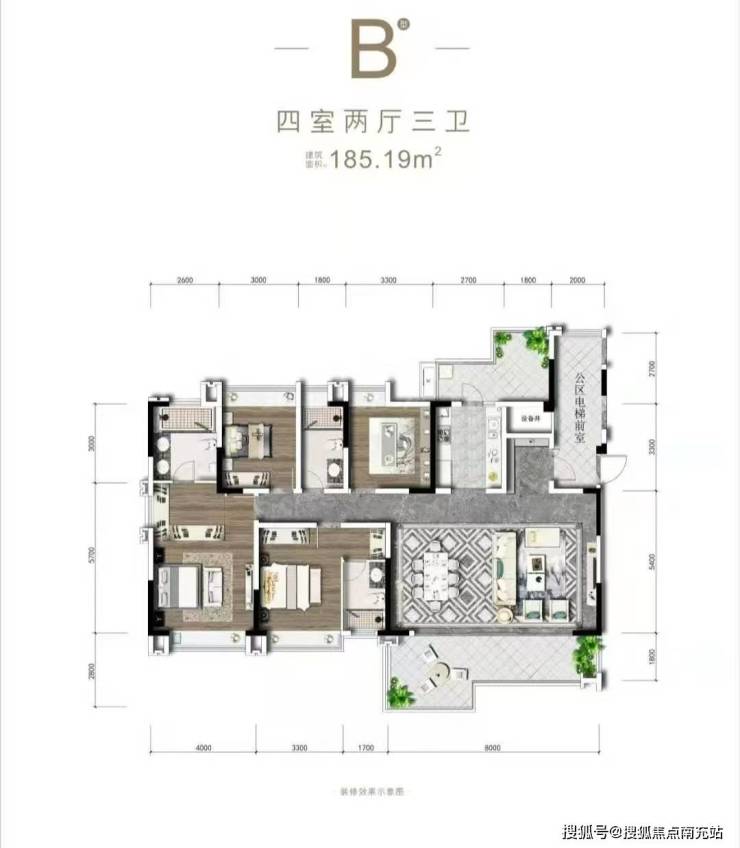 185㎡四居三卫:3.3米层高搭配双玄关设计,12㎡专属电梯厅,双L型功能阳台