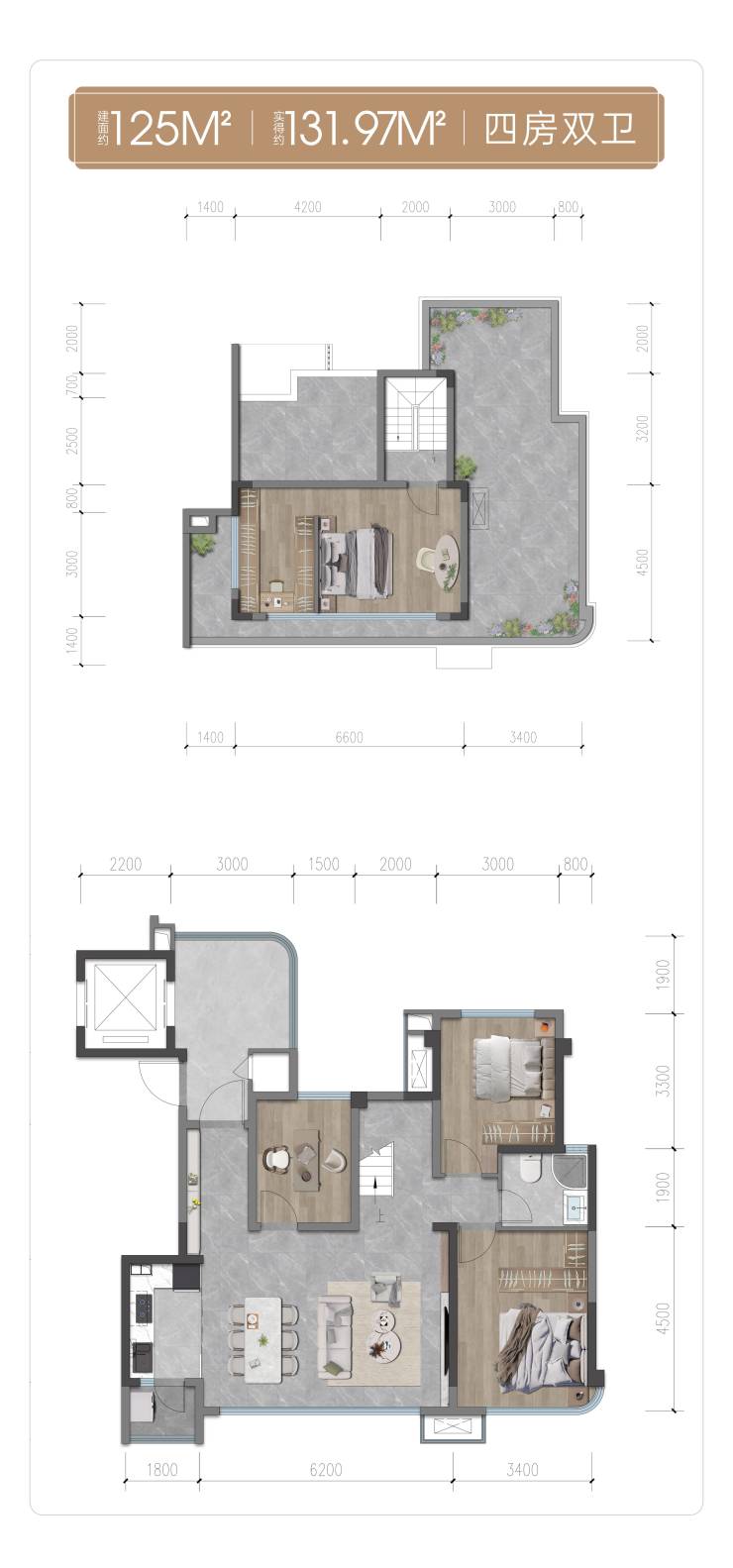 建面约125平套四