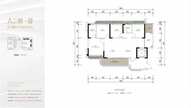 下面为您介绍该项目的相关基础数据:此项目占地面积约33亩,容积率控制在约2.5 ,绿地率约35%。房屋层高达到3.15米,楼层高度处于14层至17层范围。项目规划方面,一共规划了8栋住宅,房源套数总计397套,交付标准是精装修交付。该项目梯户比设计为2梯2户,每户都配备独立入户光厅。产品面积主要有两种户型,一是132㎡的套四双卫户型,二是143㎡的套四三卫户型。房屋总价区间处于423万至574万之间。物业服务由龙湖物业负责,物业费为3.8元/㎡/月 。