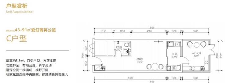 5.产品实用:43-91㎡清水小户(主力55-60㎡),3.25-3.3米层高,部分赠7-9㎡阳台,水电气三通自住成本低,办公/民宿/自住多场景适配,准现房已提前交房