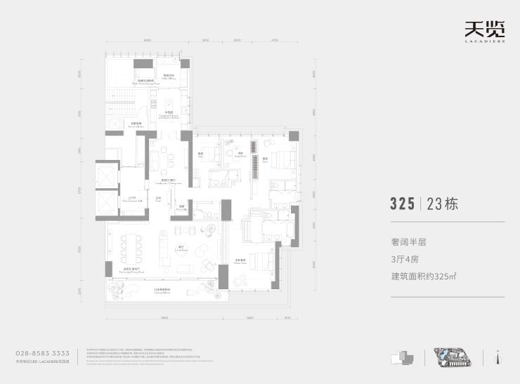 新加坡国宝级设计大师曾仕乾,依托天府CBD无可比拟的三重景观视野,以顶级规划匹配超豪地块,以现代风格演绎东方美学,匹配超级豪宅气度,打造传世传承之作。