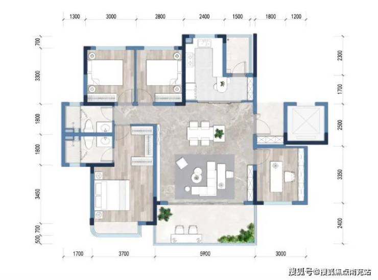 户型配置中西双厨、270度的客厅景观视野、超级方厅,把公区的空间尺度感拉到了160㎡以上的大平层产品同级别。