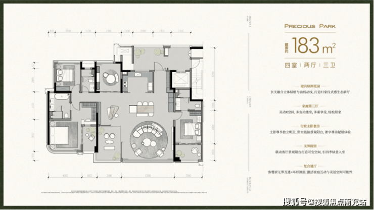 1.室内打造景观中轴 | 2.全空间独立花园配置 | 3.主城唯一室内四花园