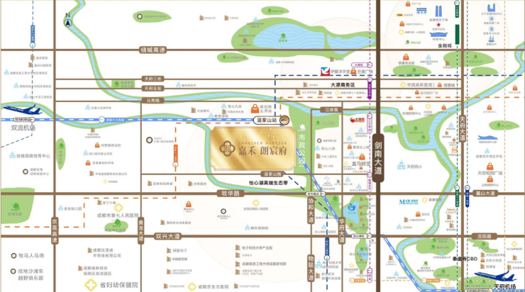 交通:2公里成熟配套,高端资源围绕 ✨🚘 立体化交通:3地铁环绕:22号线(规划中)、5号线(已经通车)、19号线(已经通车),4纵(天府大道、剑南大道、华府大道、成雅高速)4横(三环路、绕城高速、武汉路、牧华路)