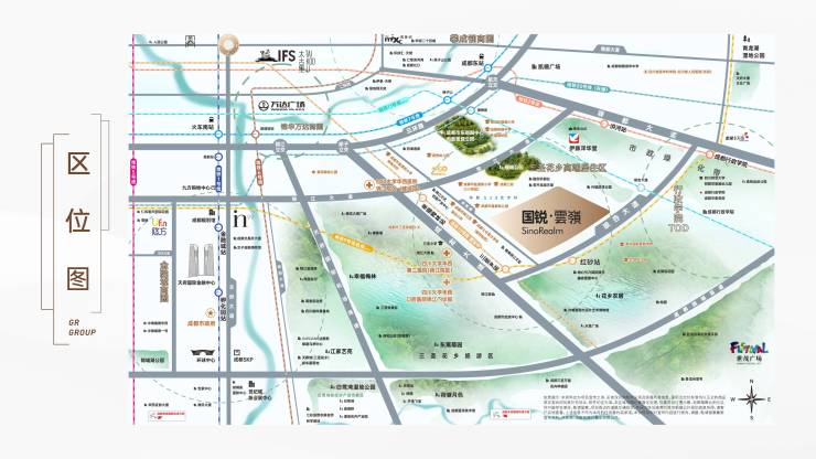 休闲:东侧与三圣花乡旅游区花乡农居一街之隔,可近观三圣乡湿地公园,远眺龙泉山脉,休闲资源丰富。