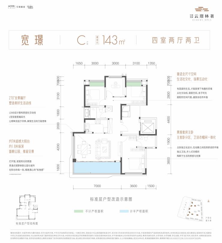 建面约143平套四