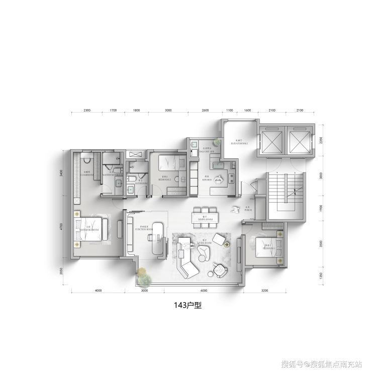 1、建面约143㎡ 4室2厅2卫(经典改善)
