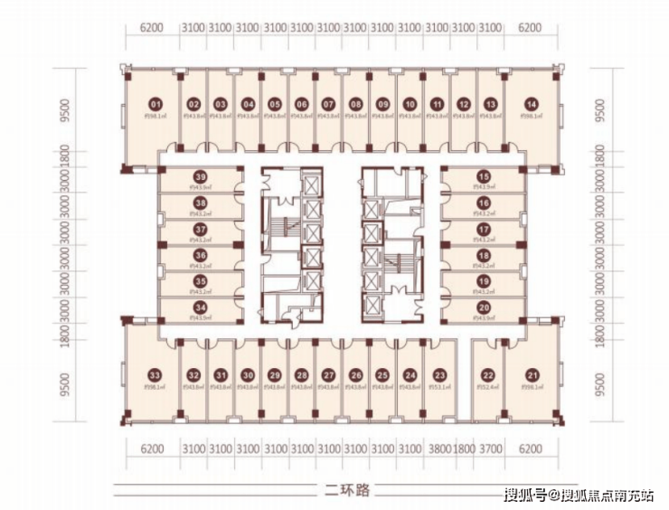 面积区间 43、 53、98㎡ 层高 3.1米SOHO