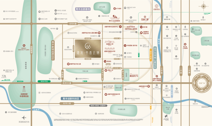 建发·书香云锦位于光华北八路西侧,北侧靠近日月大道、南侧靠近光华大道,区域内更有地铁4号线蔡桥站,交通出行较为便利。