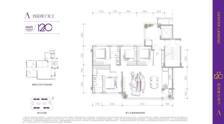 建面约120平套四