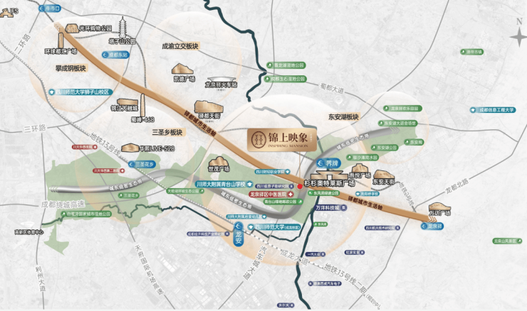 奢享繁华:杉杉奥莱,世茂广场、东安天街,楼下小熙街,平移上海文艺街区「安福路」高阶学府:向阳桥小学&向阳桥中学、川附属青台山小学、青台山中学、川师成龙校区、财经学院双地铁网:令地铁2号线界牌站/13号线一期龙安站