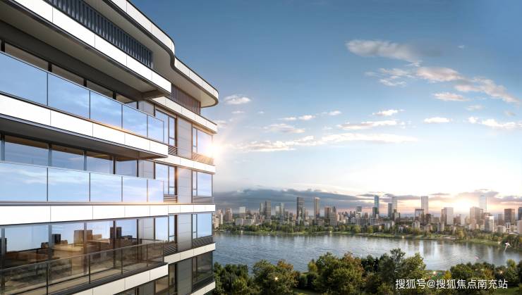 光瀑流线立面:大胆采用先锋建筑主义的曲线设计,营造“湖泊绮丽、浮光跃金”的视觉震撼
