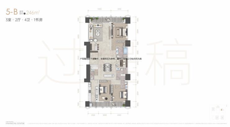 356㎡【3T2户,全户型270度转角布局,极致的开间面和空间布局设计】