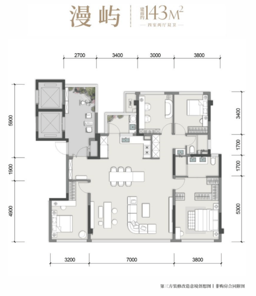 建面约143平套四