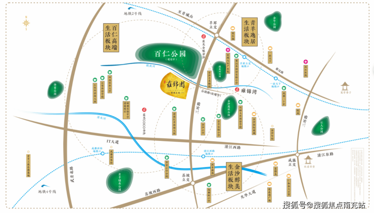 雍王府选址于城西外金沙,紧邻建设中的百仁公园,占地面积广阔,环境清幽。这里不仅是政府重点打造的区域,更是延续了3000年古蜀王国之脉的宝地。金沙遗址的深厚文化底蕴,赋予了雍王府独特的文化韵味和历史底蕴。在这里,繁华与宁静并存,让每一位居者都能感受到“西贵”之地的独特魅力。