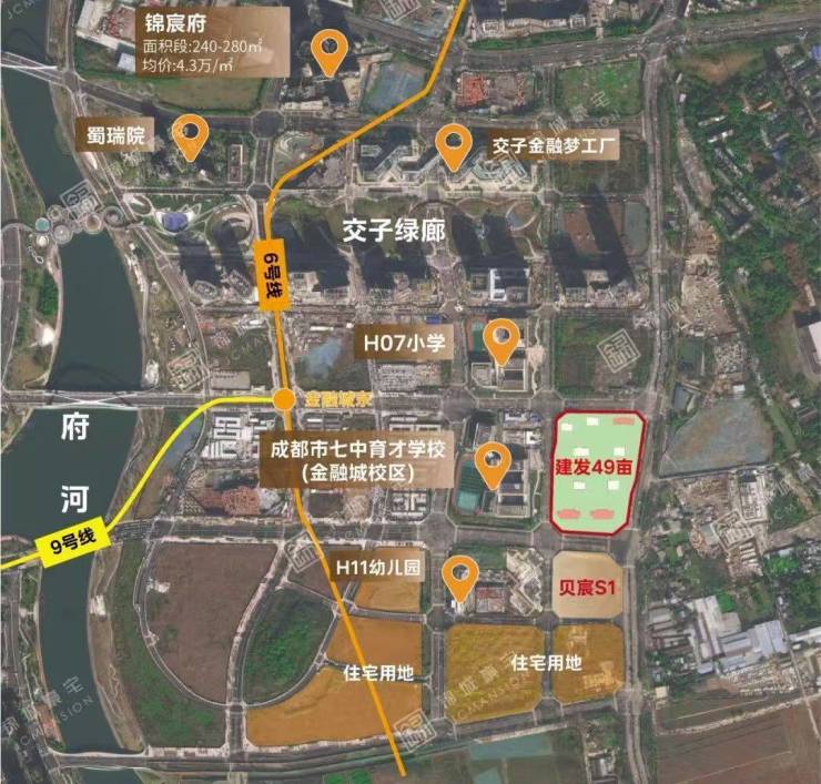 项目的配套设施也十分完善。交通方面,直线 3 公里范围内覆盖地铁 6 号线、9 号线等多条轨交线路,距离金融城东站仅 408 米。教育上,西侧紧邻七中英才学校,北侧临近 H07 小学,周边还有众多幼儿园和小学。商业上,1.6 公里可达成都复星国际金融中心,1.8 公里直达环球中心。医疗方面,周边 3 公里内有 14 所一级及以上医院,包括华西附二院锦江院区等。生态环境上,周边有交子人行桥・漂浮公园、中和湿地公园等。