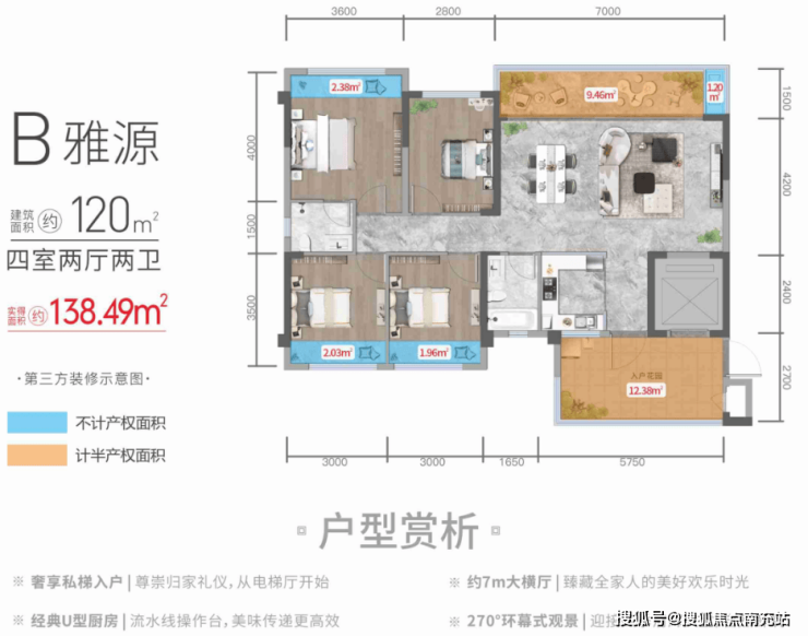 2、私梯入户,带阳光前厅的幻变空间,可安放家人更多兴趣与爱好;