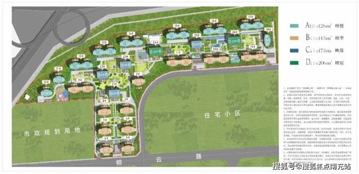 ### 【项目规划】:主城稀缺百亩大盘,尽享宽楼距与多中庭【鹭湾锦上映】项目整体规划十分出色,总占地面积约达 127 亩,容积率为 2.0,是主城区中难得一见的纯住宅大盘。城投置地精心布局,在这块 T 形地块上,规划建设了 26 栋 14 - 23F 的高层建筑。这些建筑全部采用 2T2 户板式结构,居住的舒适度和私密性得到了充分保障。其中,仅有一栋建筑为东西朝向,其余均为南北通透户型,能让业主充分享受阳光与清风。