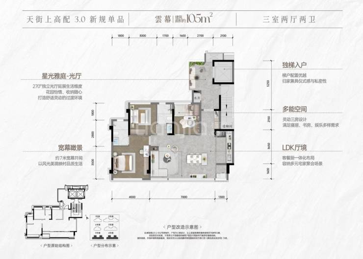 建面105平套三