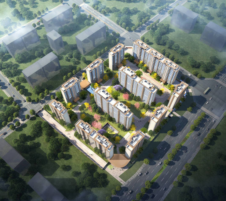 采用围合式三中庭布局,楼间距 45-118 米。园林以 “水” 为灵感,打造了下沉秘境水苑、中央水庭等景观,还甄选多样植栽,营造出艺术栖居氛围。