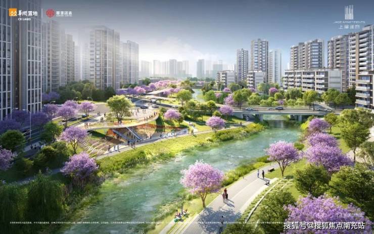整个地块采用住宅与公园融合式开发打造,住宅面积占比仅有约43%,剩下的200多亩均为公园、河流、道路以及社区礼堂用地,其中光是公园部分就有约160亩,真正实现“一半公园、一半城”!