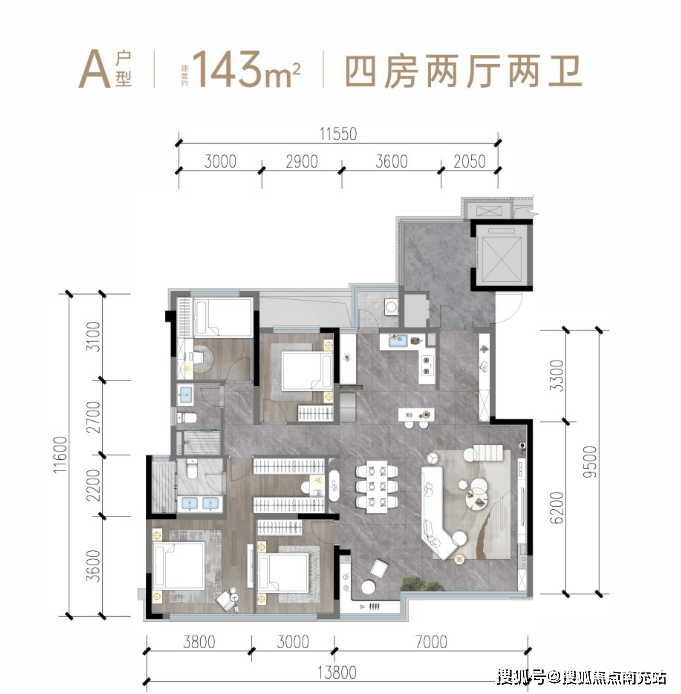 个性创变横厅构建:项目独具匠心地运用 LDKB 横厅搭配 X 空间的设计思路,极大拓展了空间功能的可能性。在此空间里,功能不再受限于固定模式。它可以灵活转变为温馨宜人的会客区域,轻松满足日常社交活动;依据个人兴趣爱好,还能精心打造成静谧的书房,让人沉浸于知识的浩瀚海洋;或者打造为活力四射的电竞室,尽情畅享热血沸腾的游戏时刻;也能够成为充满力量感的健身区域,开启健康积极的生活模式。独立入户玄关规划:入户玄关巧妙地融入动静分区理念,充分考量业主多样化的生活场景需求。当家中有宾客前来拜访时,这里瞬间成为热情迎接客人的过渡空间;而当业主渴望享受属于自己的宁静休憩时光,它又能恰到好处地阻隔外界的嘈杂喧嚣,实现生活场景的自由切换,为生活增添诸多便利与舒适之感。四房高阶规格呈现:在户型设计方面,128㎡户型无疑是一大闪光点。它打破了常规面积的局限,展现出可与 143㎡户型相媲美的宽敞空间尺度。不管是三代同堂的大家庭,还是追求高品质生活的精英人士,该户型都能从各个维度满足他们对于高品质定制生活的多元需求,为居住者带来更为奢阔、舒适的居住体验。奢华主卧体系打造:主卧配备独立衣帽间与酒店式主卫,这一精妙设计营造出专属于主人的私密天地。独立衣帽间能够充分满足主人对衣物收纳与展示的需求,尽显品味与格调;酒店式主卫则带来极致舒适的享受,仿佛让人置身于豪华酒店之中,为主人精心打造出一处可以放松身心的私密空间。