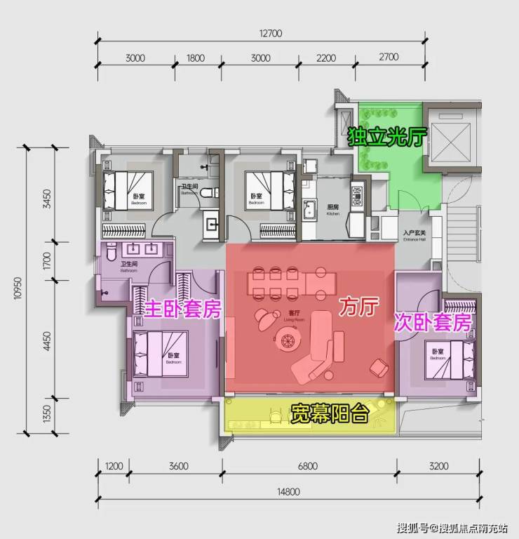 但万万没想到,在一众神仙之中,中交天府九章用近乎完美的方厅尺度,一战封神,让我看到成都当下143户型领域,最强的“六边形战士”。