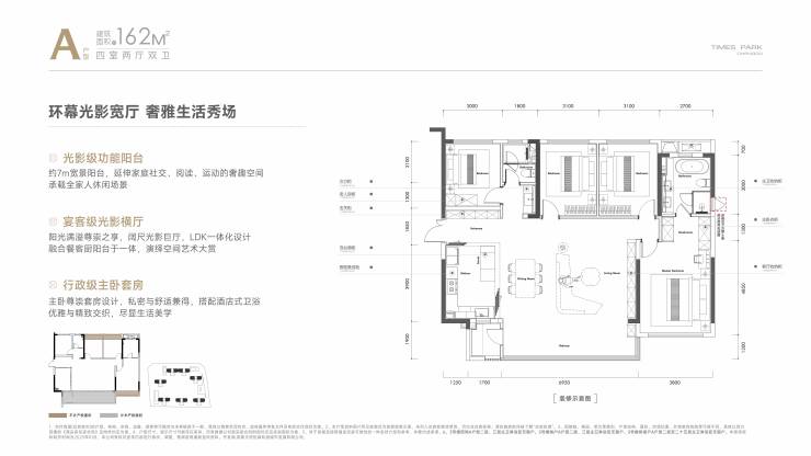 建面约162㎡四室两厅两卫
