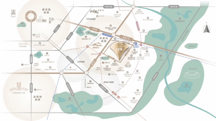 位于成华区东客站核心区域的楠盛宝樾,具体坐落于和韵西路39号。项目占据优越地理位置,周边交通网络四通八达,紧邻三环快速路、成渝立交枢纽以及蜀都大道保华路段等城市主干道。社区周边汇聚万科魅力之城、蓝光锦绣城等多个成熟住宅区,形成完善的居住氛围。