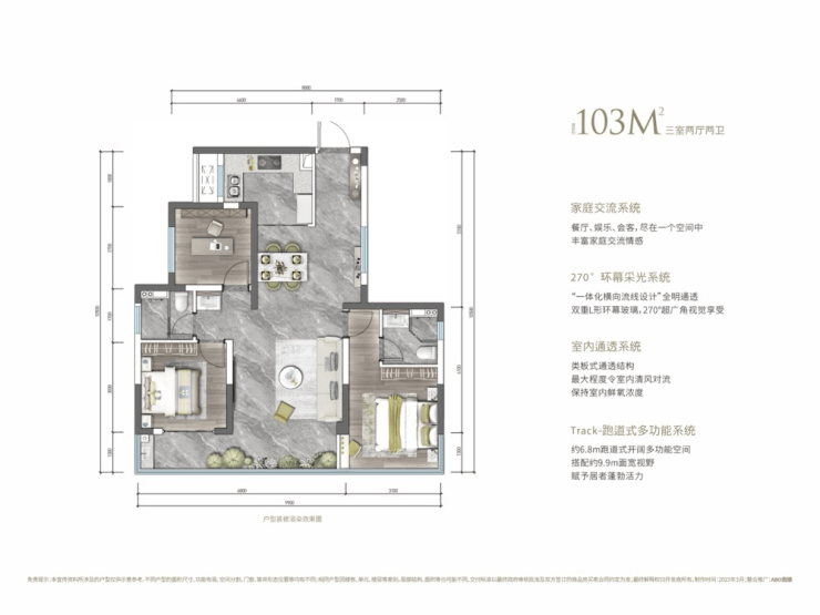 约6.8M跑道式开阔多功能空间,搭配约9.9M面宽视野,赋予居者蓬勃活力