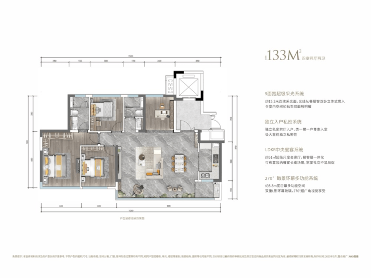 4面宽立体透光系统,餐厨客卧立体式采光,营造全明璀璨场域