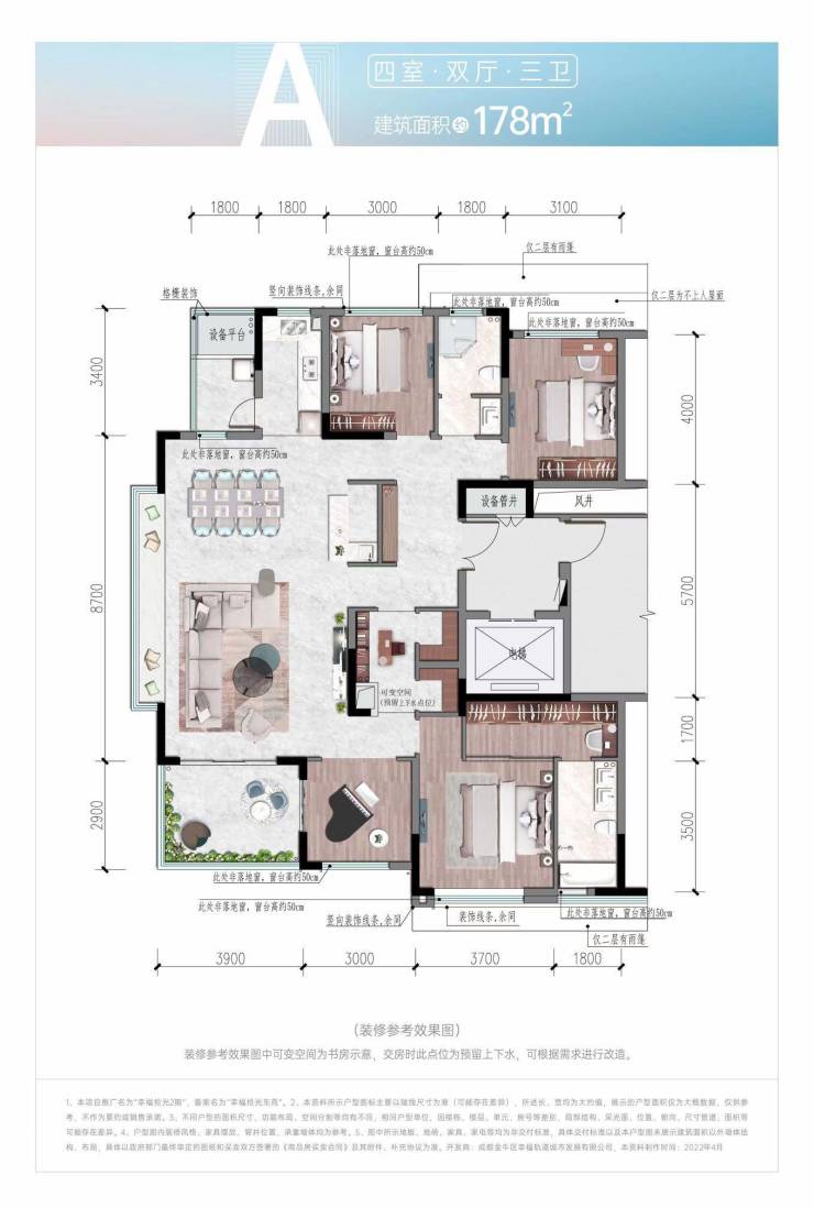 总层高:二期12-17F(一楼4.5米架空层无住宅)三期9-17F