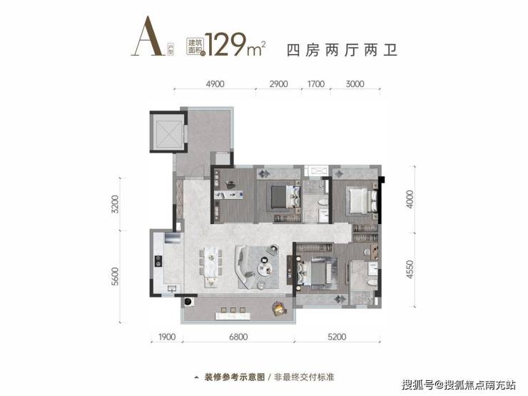 创新采用"无界平层"设计理念,129-212㎡全系四房标配: