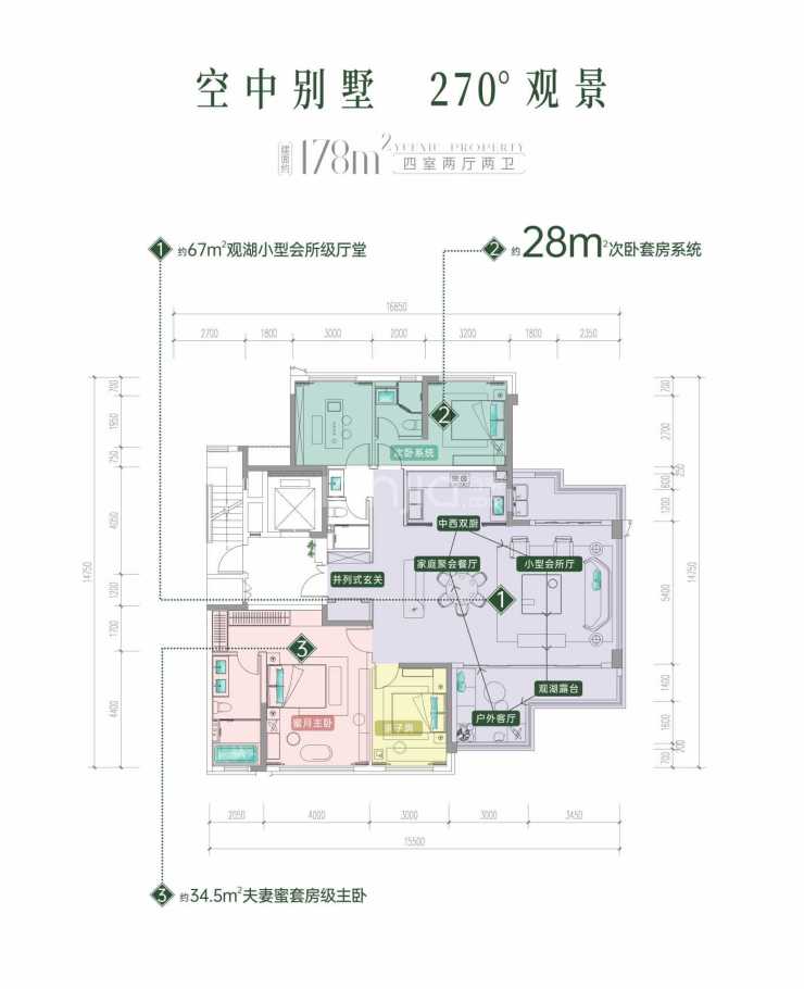建面178平套四