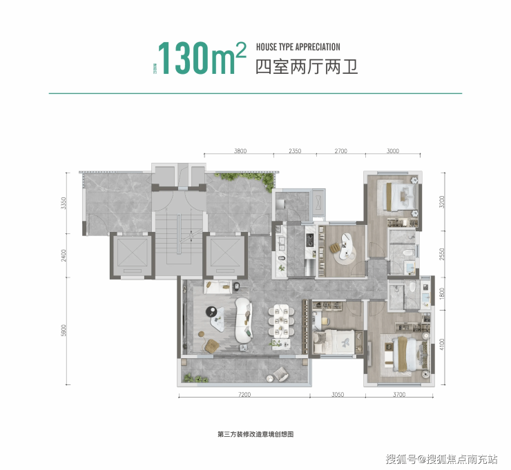 130㎡四室两厅两卫为进阶改善主力,约13米超大面宽,四开间朝南,全屋明亮通透。四房布局合理,南向双卧+双次卧,可满足二胎、三代同堂居住。约7.2米全景阳台,兼具休闲、晾晒与绿植功能。U型厨房操作空间充足,全屋过道利用率高,层高约3米搭配宽景飘窗,空间感与舒适度升级,是兼顾品质与性价比的优质选择。