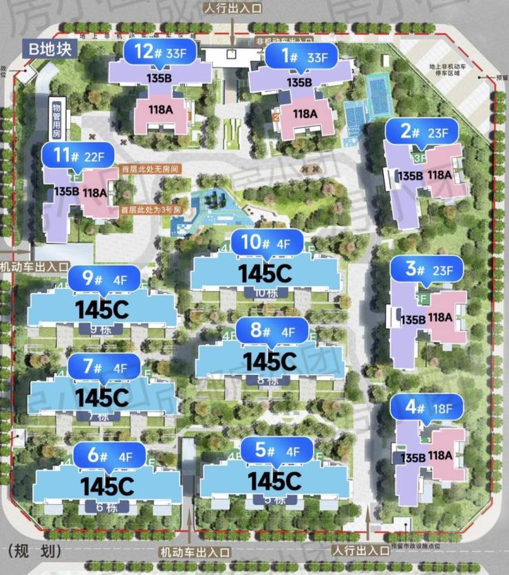 项目户型:117.35m²(套三)134.42m²(套四)