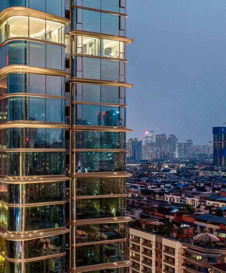 2.产品与设计 顶配的产品力:由UUA、CCD等国际团队设计,拥有玻璃幕墙外立面、3.3米层高、超大面宽户型(如295㎡户型面宽约31.4米)。精装配置奢华(嘉格纳、YKK等品牌)。 狭小的社区规模:占地仅约11亩,仅规划2栋楼、82户。社区内部园林、公共活动空间非常有限,更像“空中豪宅”。