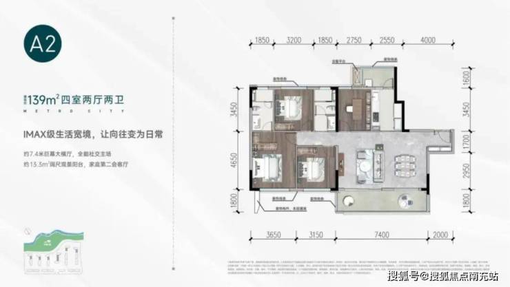 建面约139㎡宽景四房