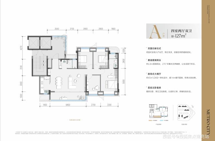 项目深谙时代层峯对于居住和生活的品质需求,以建面约127-141㎡奢适四居,精筑与时代层峯气质相符的美学空间。全系纯四房改善社区,圈层更纯粹,高定一个时代的生活藏品。
