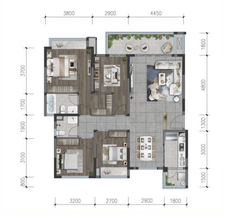 建面约126㎡,套四双卫洋房