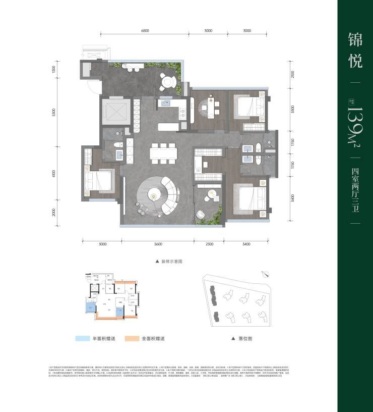 建面约139平套四