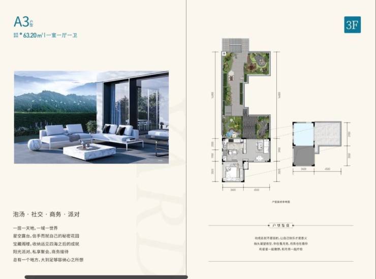 ⏺上叠面积:63㎡左右,露台43-93平