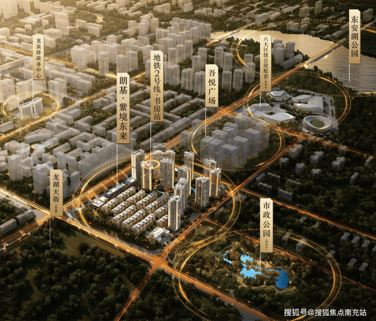 接下来了解一下项目概况。售楼部地址位于地铁二号线书房站C口约100米处。项目占地面积广阔,大盘约158亩。产品方面,总计665套,目前在售14号楼,合计145套。产品面积为建面约52 - 57㎡的百变轻资产,楼层分布在13 - 22F,梯户比为4T16户,开间约4.2 - 4.6m,进深约8.8m,亮点是约4.2m层高,主力面积段约52平米,交付标准为清水交付,交房时间定在25年8月,产品单价方面,13 - 14F为6880元/㎡一口价,物业费4元,物业公司是北大资源,项目不通气。选择【朗基紫境东来】轻资产,有以下6大理由:理由1:占据东安湖核心板块 - TOD黄金消费轴!东安湖是成都未来发展的区域中心,更是成都东进桥头堡以及东安湖商业活力原点。在此投资,无疑占据了城市发展的核心地带。理由2:区域内唯一在售地铁上盖物业,通勤首选!项目位于2号线地铁书房站上盖,地铁直通地下室,出行极为便捷。而且周边有三大主干道(成龙大道、驿都大道、桃都大道)环绕,交通便利带来大量人潮,未来发展前景十分可观。