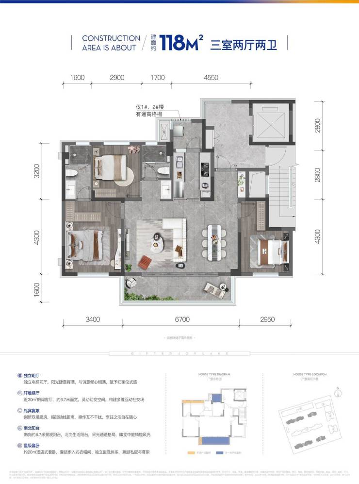 景悦|建面约128㎡全景奢宅 阔尺阳台一揽双中庭景观
