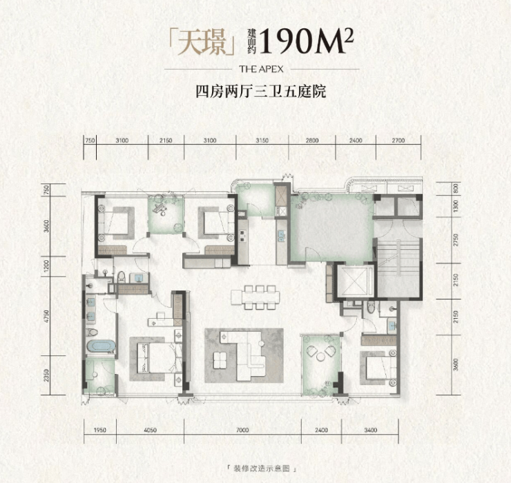 建面约190平套四