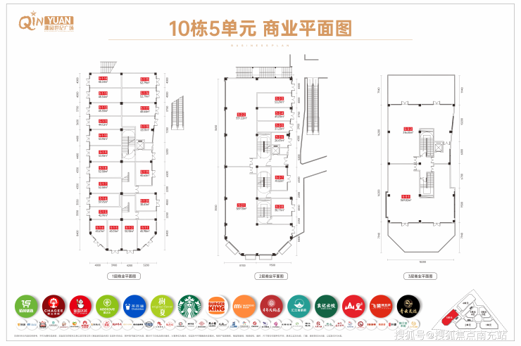 空间规划:首层20-60㎡灵活铺面;二层30-370㎡可组合空间;三层230-400㎡品牌形象店
