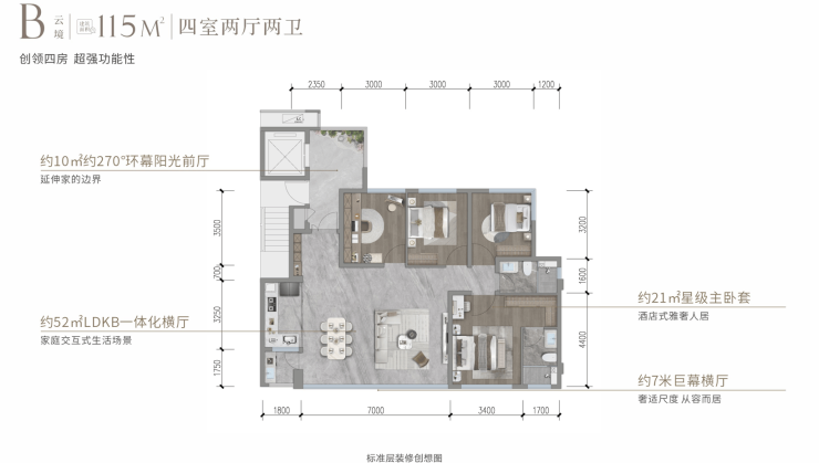 建面115平套四