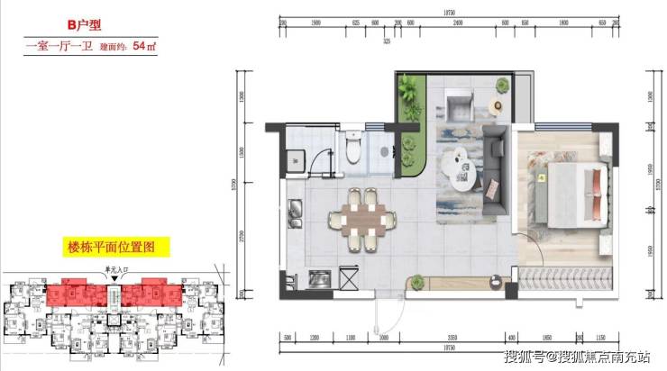 1号楼(11层,1梯6户):54㎡/89㎡/91㎡
